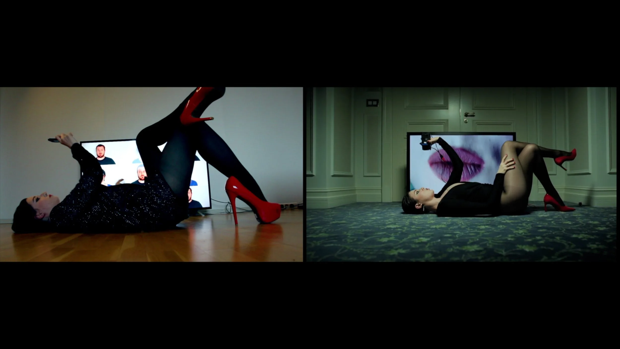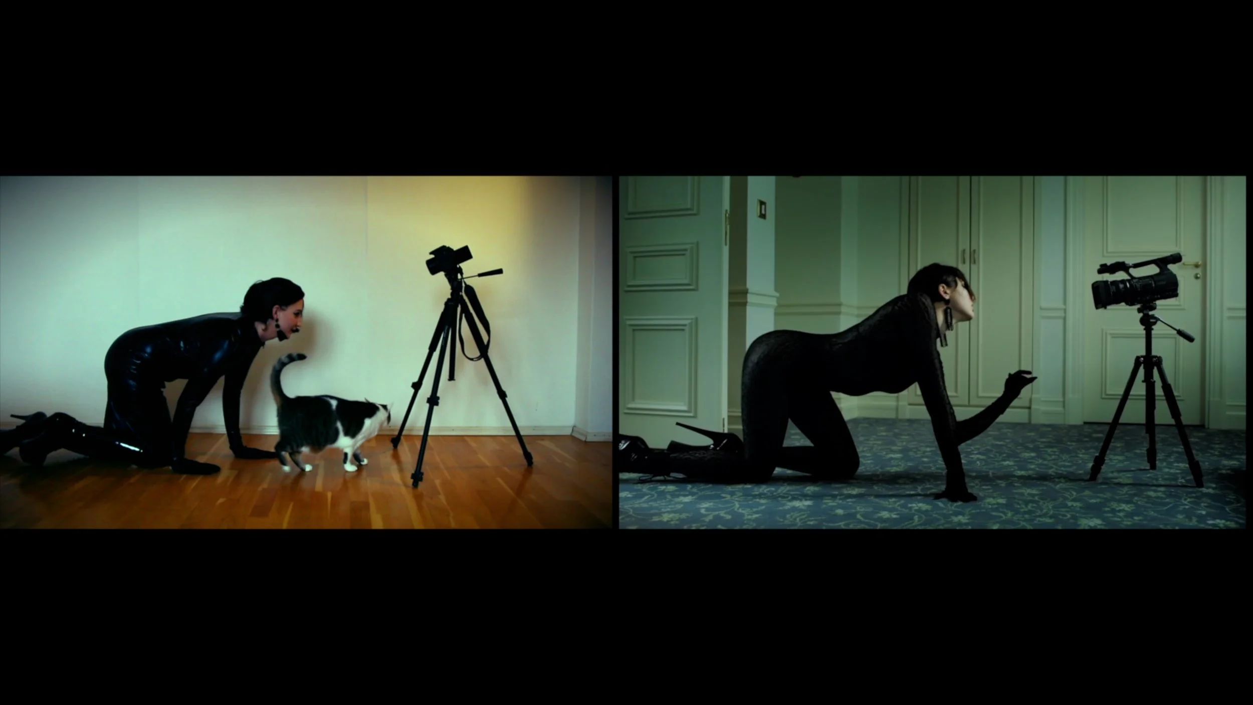 Parody aesthetic built through deliberately imperfect lighting, props, and performance choices.